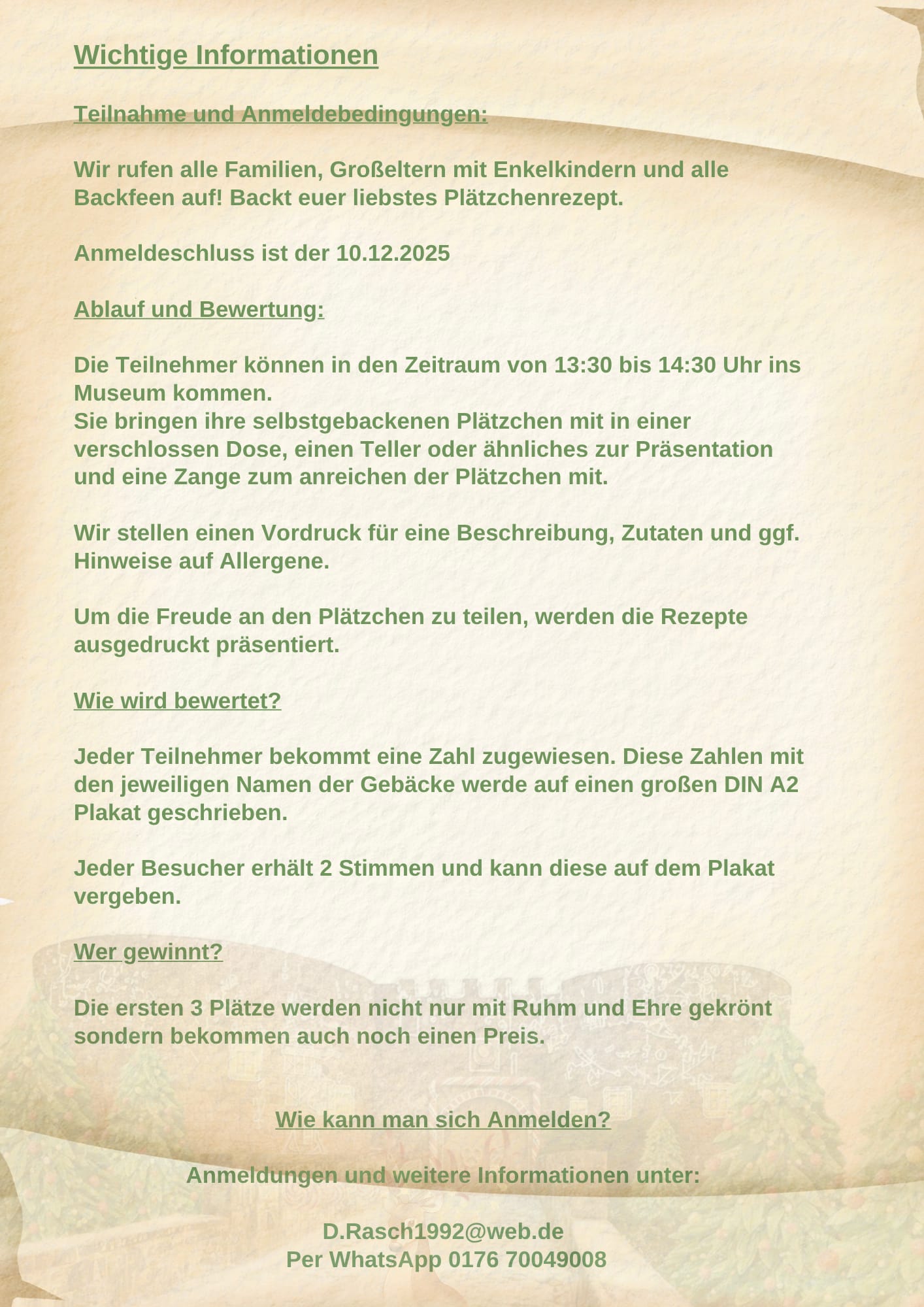 oder auf Anfrage (Tel/E-Mail). Eintritt frei